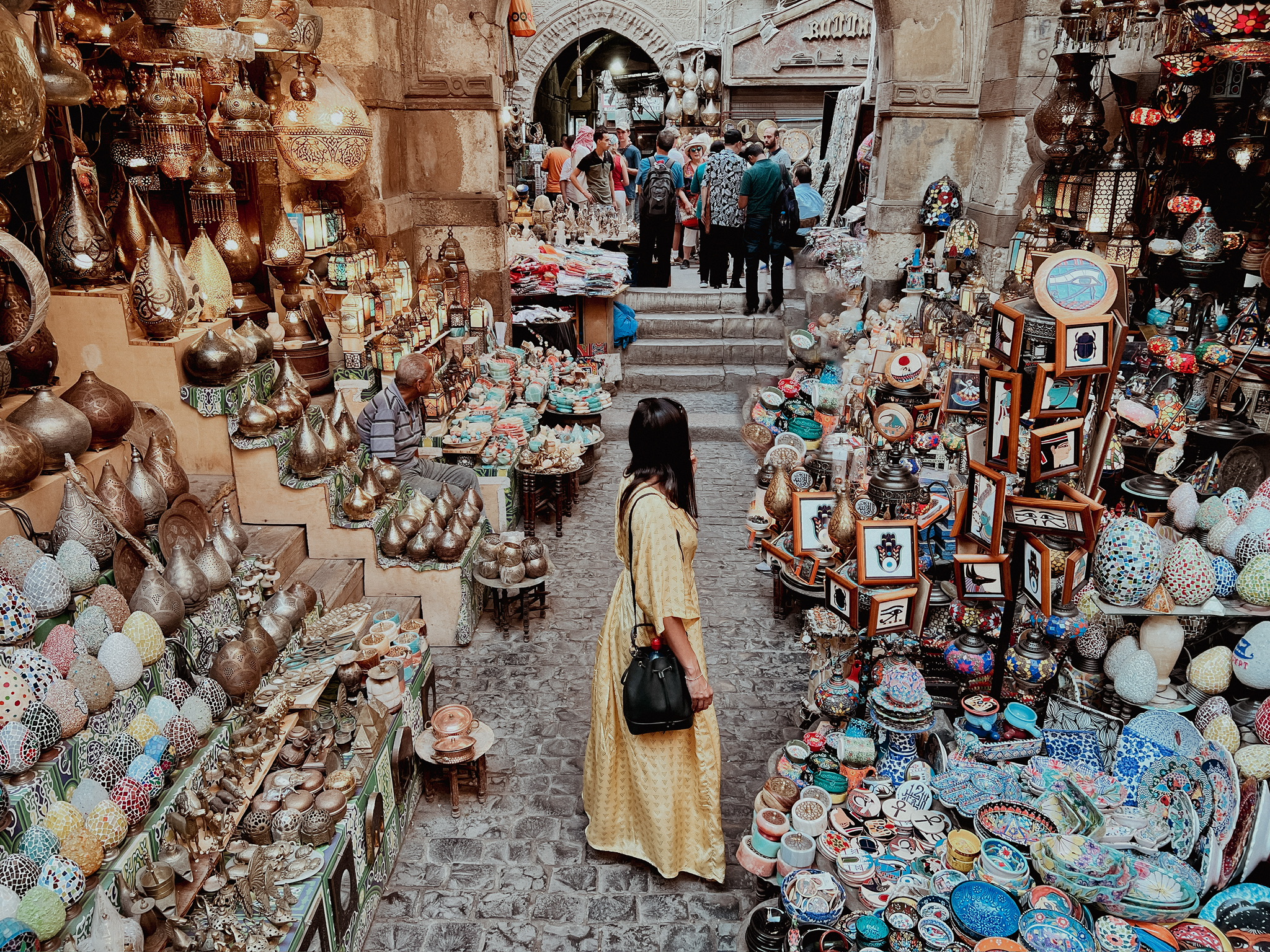 Khan El Khalili market is the largest and one of the most visited markets in Cairo that has been around for centuries. At the market you will find numerous shops and stalls spilling onto the narrow winding lanes, selling everything under the sun! It can be a bit of a maze, but I recommend losing yourself amongst the trinkets and soaking in the spice-infused atmosphere that engulfs the market. There are also a number of cafes and restaurants tucked away in the market, one of the most iconic being Naguib Mahfouz Café which is worth the visit. The food was delicious, and some of the best we ate in Cairo.